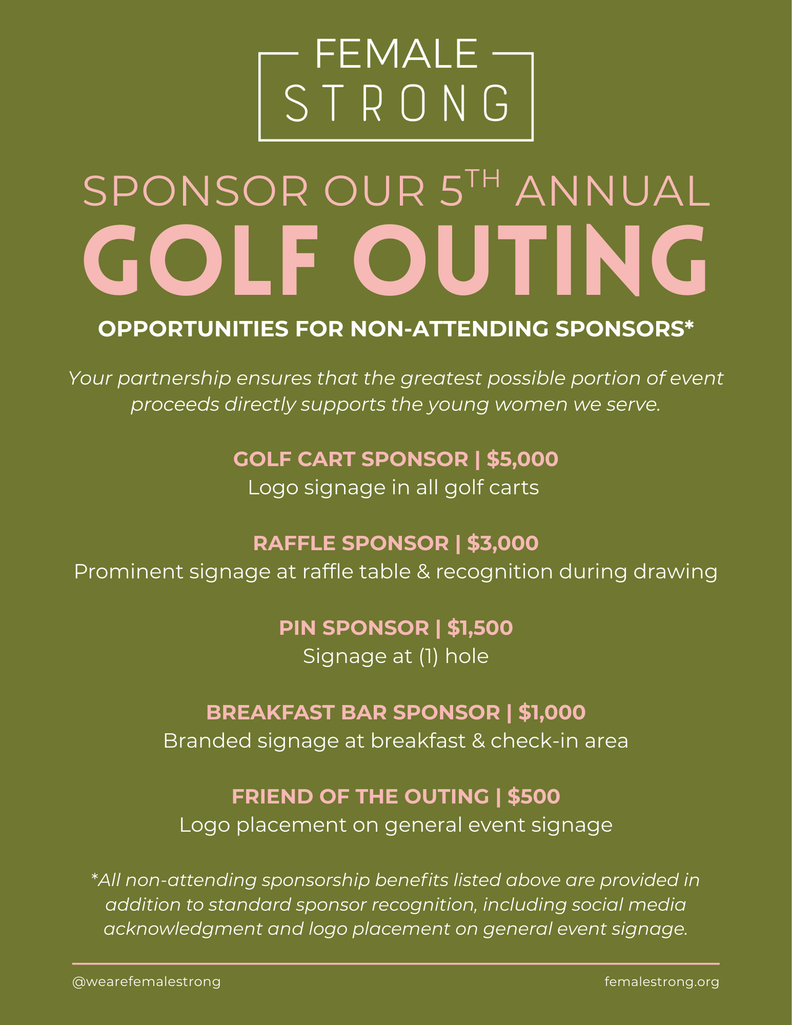 Can't attend our 5th Annual Golf Outing? Click the button below for more ways to support Female's Strong's mission to build confidence in the next generation of female leaders!